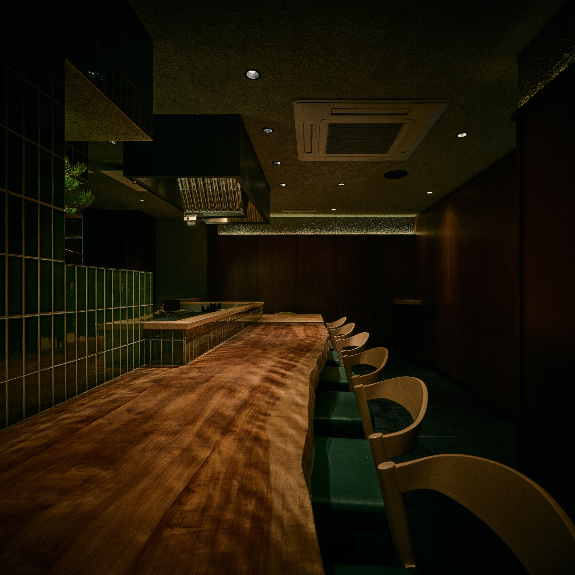 一枚板が主役の内装デザインです。